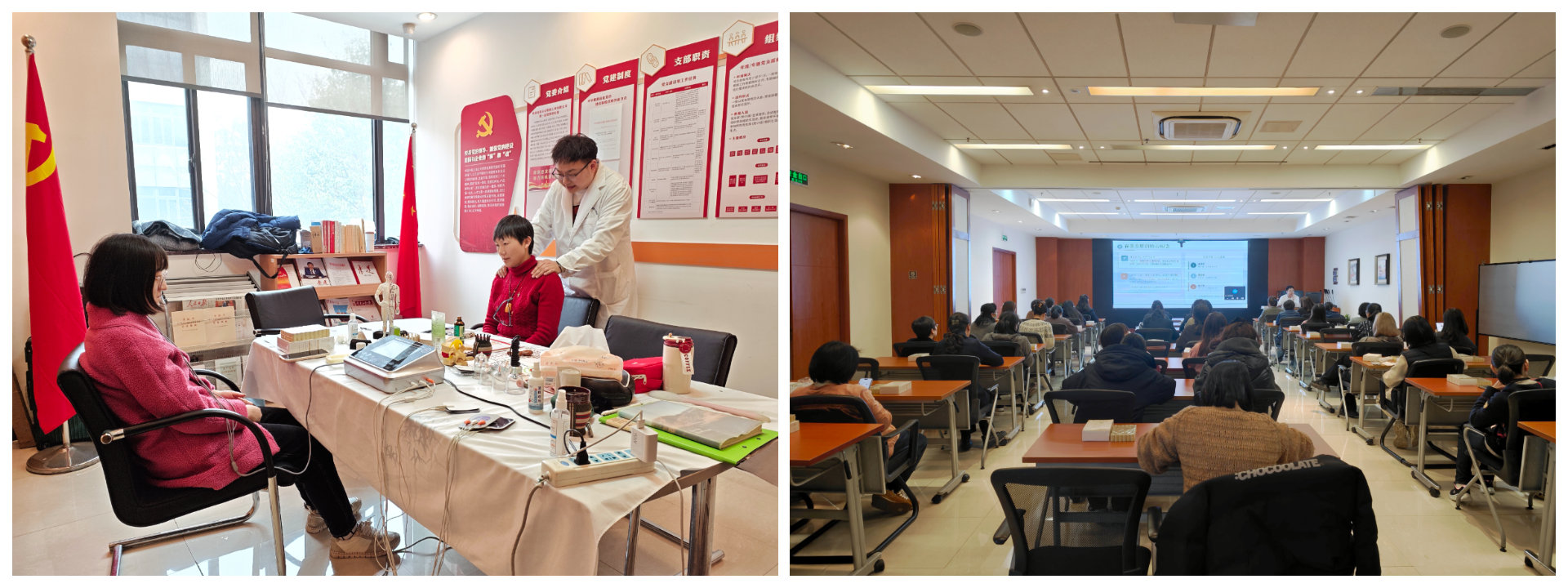 上海公司举办中医养生特护周活动,邀请中医坐诊一周,以刮痧、拔罐、走罐、艾灸等传统疗法与现代科技手段,为女职工提供全方位的健康理疗,集中组织健康讲座,现场教学春季养生技巧。区域领导班子为女职工们送上鲜花,致以诚挚祝福,希望大家快乐工作、健康生活。
