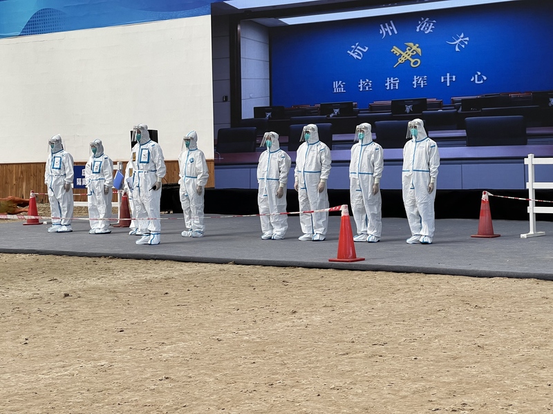 9月25日,全国海关口岸重大动物疫情(非洲马瘟)应急处置演练在杭州亚运会马术项目场馆正式举行。此次演练聚焦口岸重大动物疫情应急响应关键环节,海关总署、12个直属海关及地方农业农村部门共60余名代表到场观摩,生态环境事业部浙江运营中心作为现场检疫处理协同单位,全程深度参与并高效完成指定任务,展现了专业的检疫处理能力与协同作战水平。