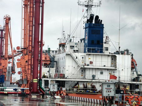 近日,浙江公司下属浙北公司接到客户委托,需对靠泊在嘉兴港独山港区A5码头的内贸船“兴通719”开展卸货船舱重量、岸罐重量计量及货物品质检验鉴定工作。该码头于今年11月下旬正式开港运营,此次业务是浙北公司在该码头承接的首单检验鉴定任务。
