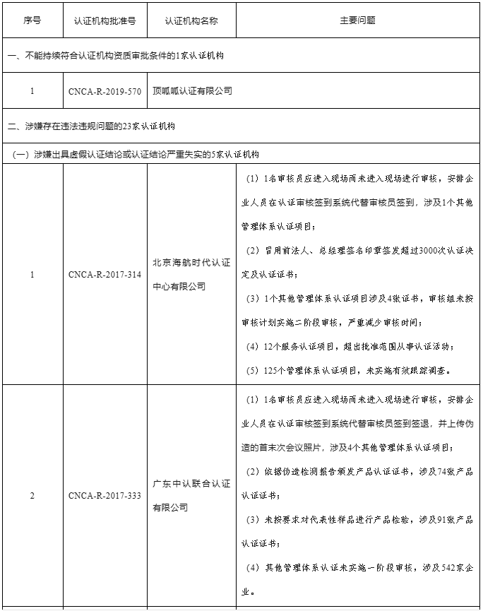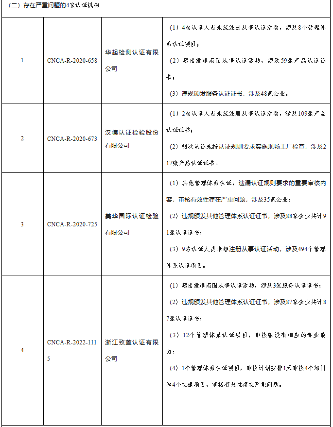 (一)部分认证机构涉嫌存在出具虚假认证结论或认证结论严重失实的问题