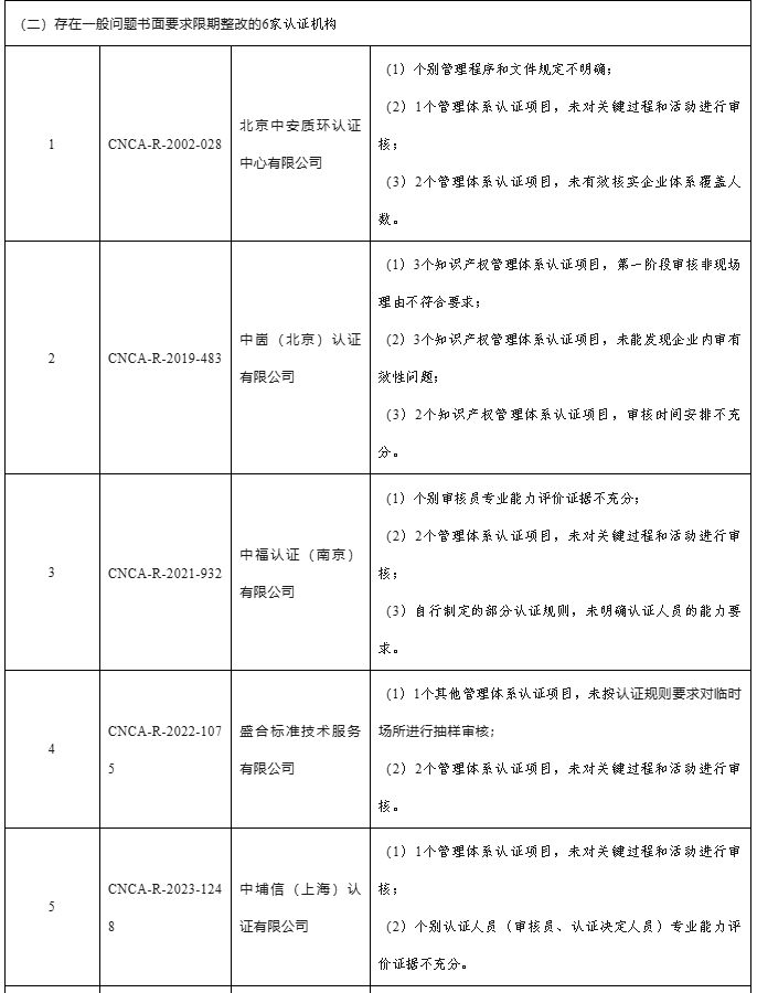 (六)部分认证机构自身体系运行或内部管理存在问题