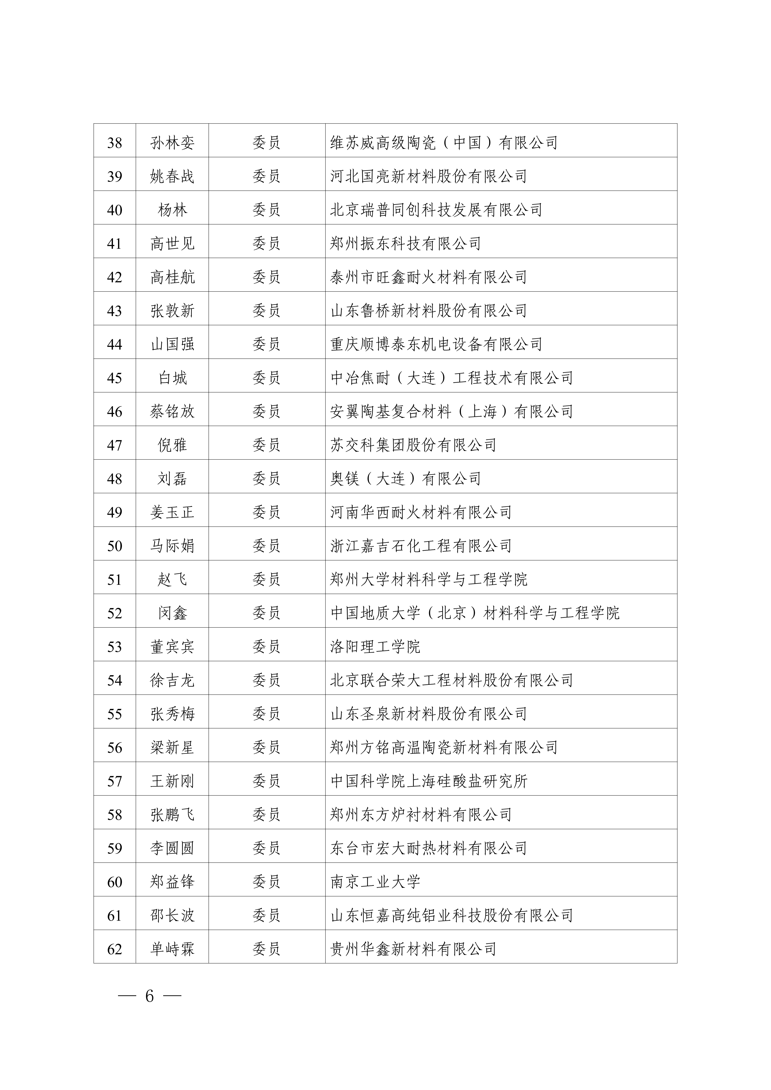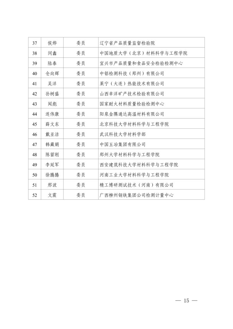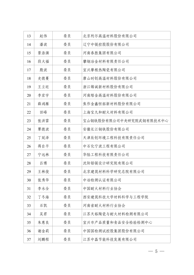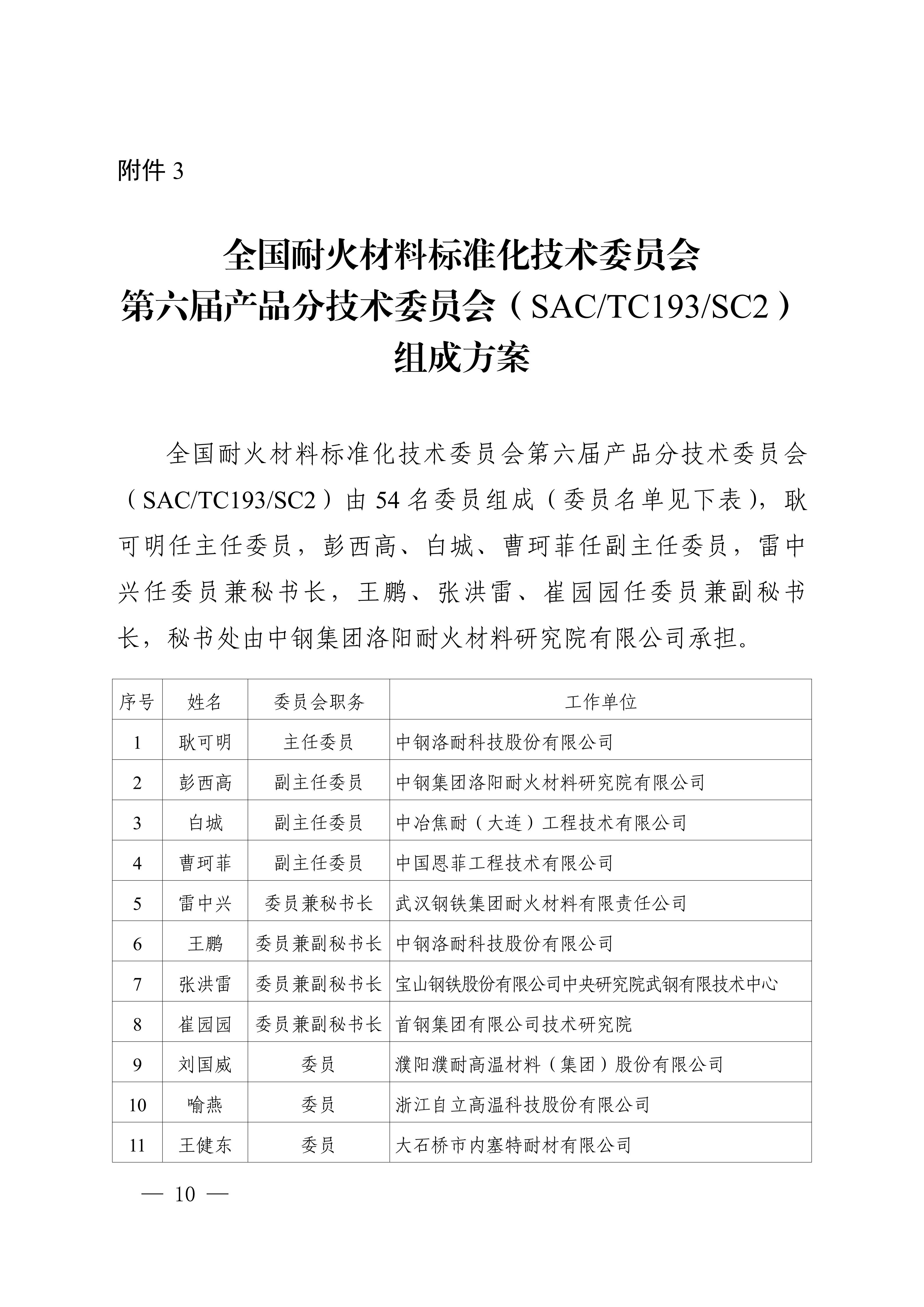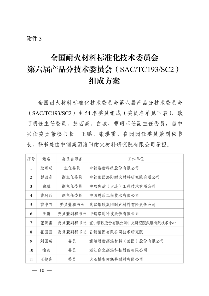 3.全国耐火材料标准化技术委员会第六届产品分技术委员会(SAC/TC193/SC2)组成方案