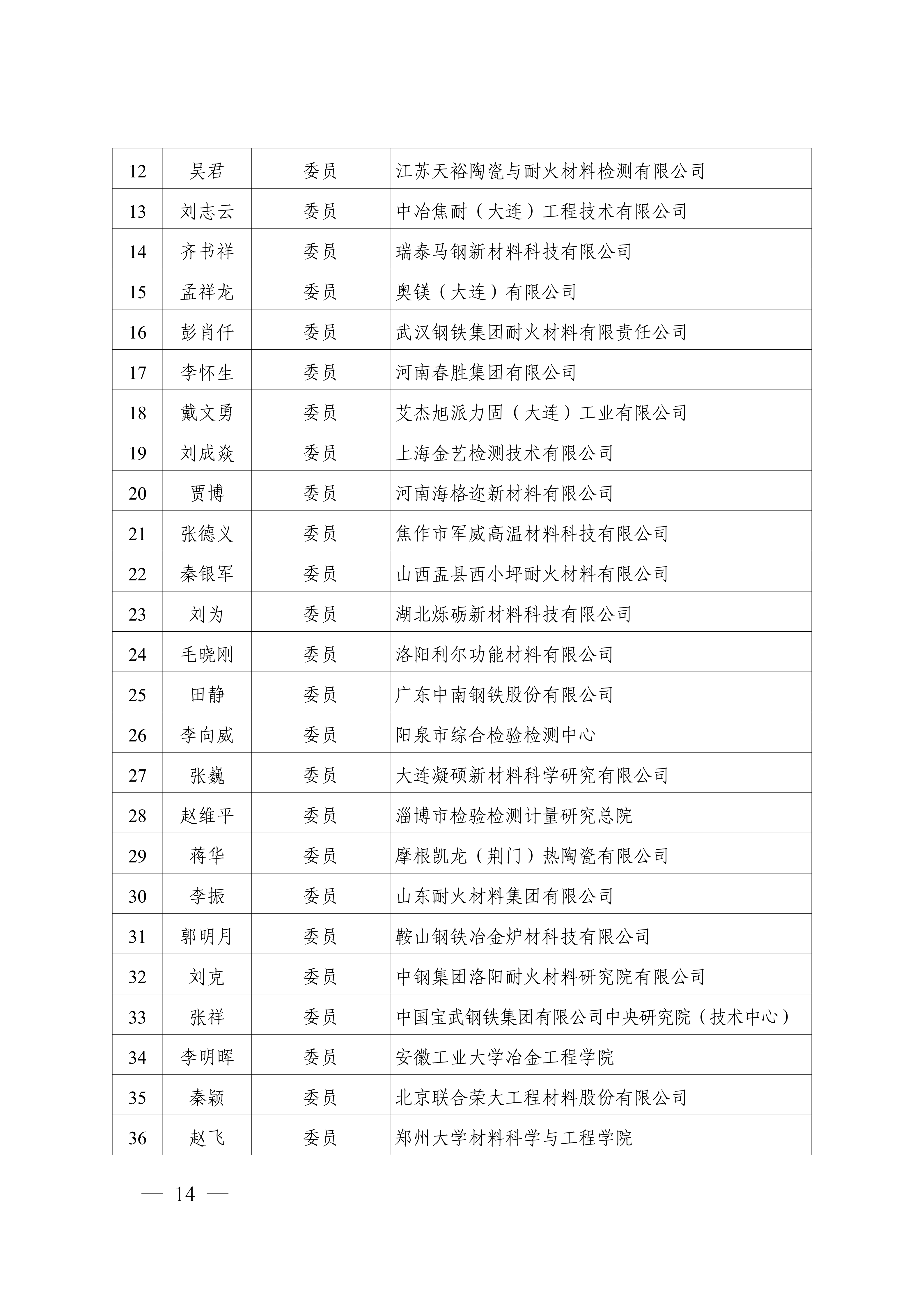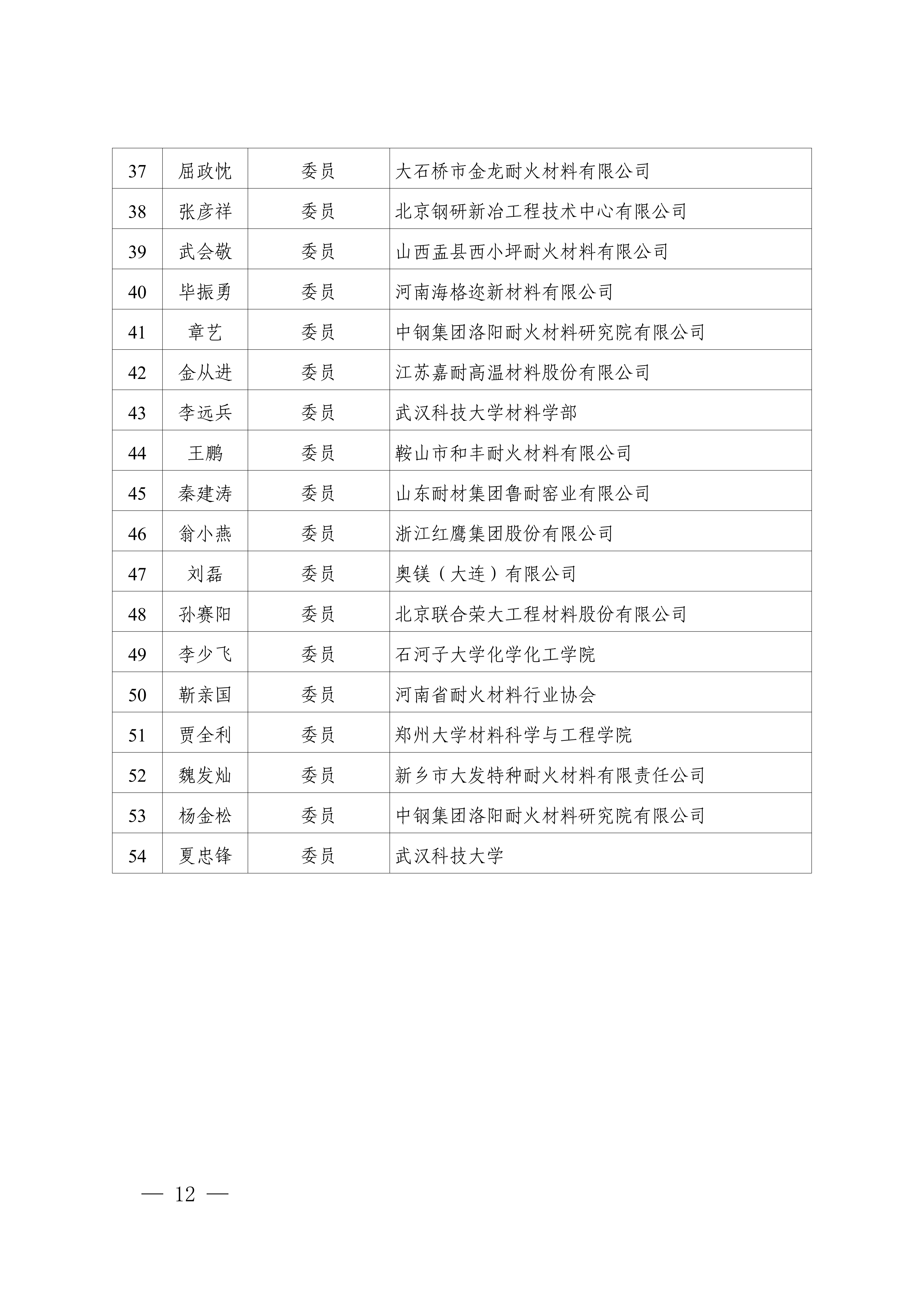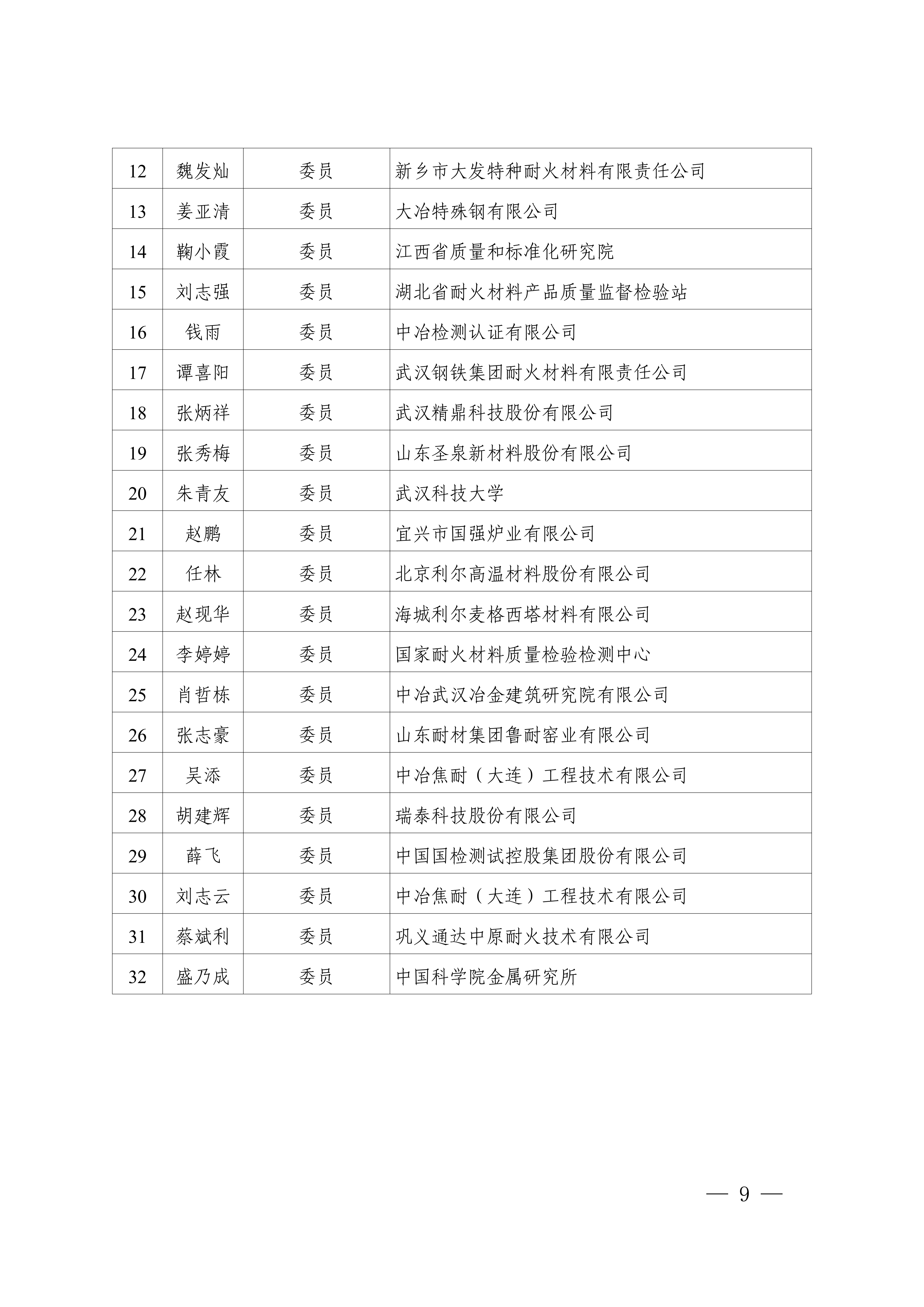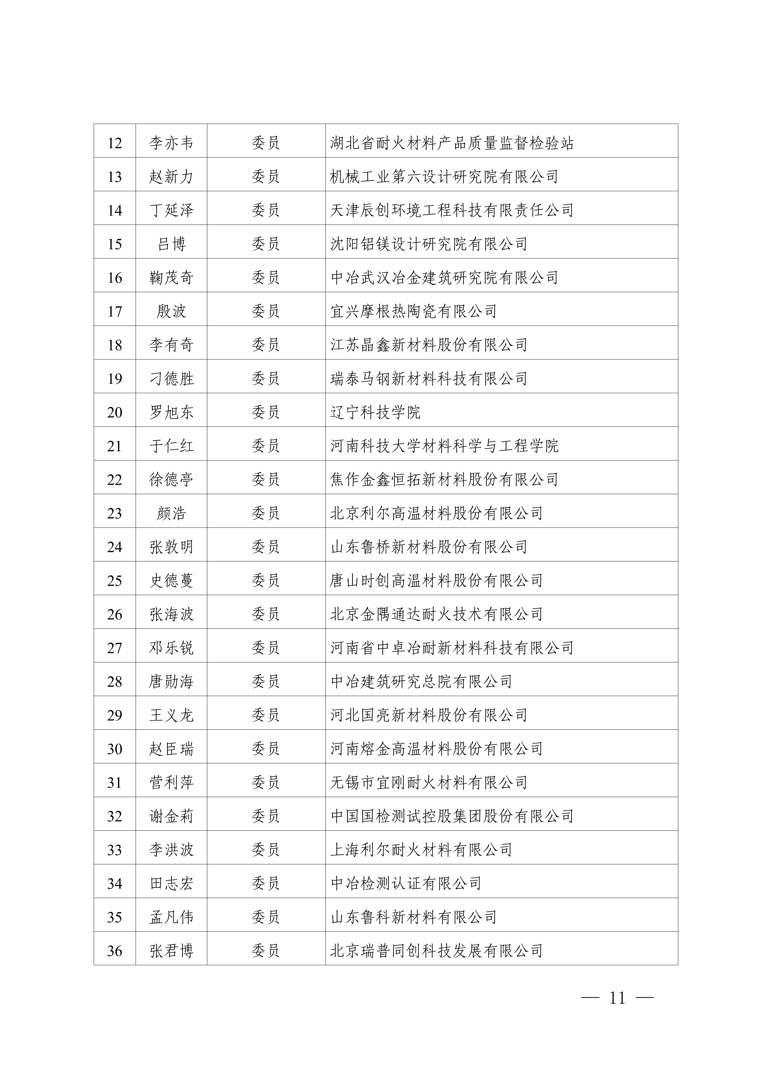 3.全国耐火材料标准化技术委员会第六届产品分技术委员会(SAC/TC193/SC2)组成方案