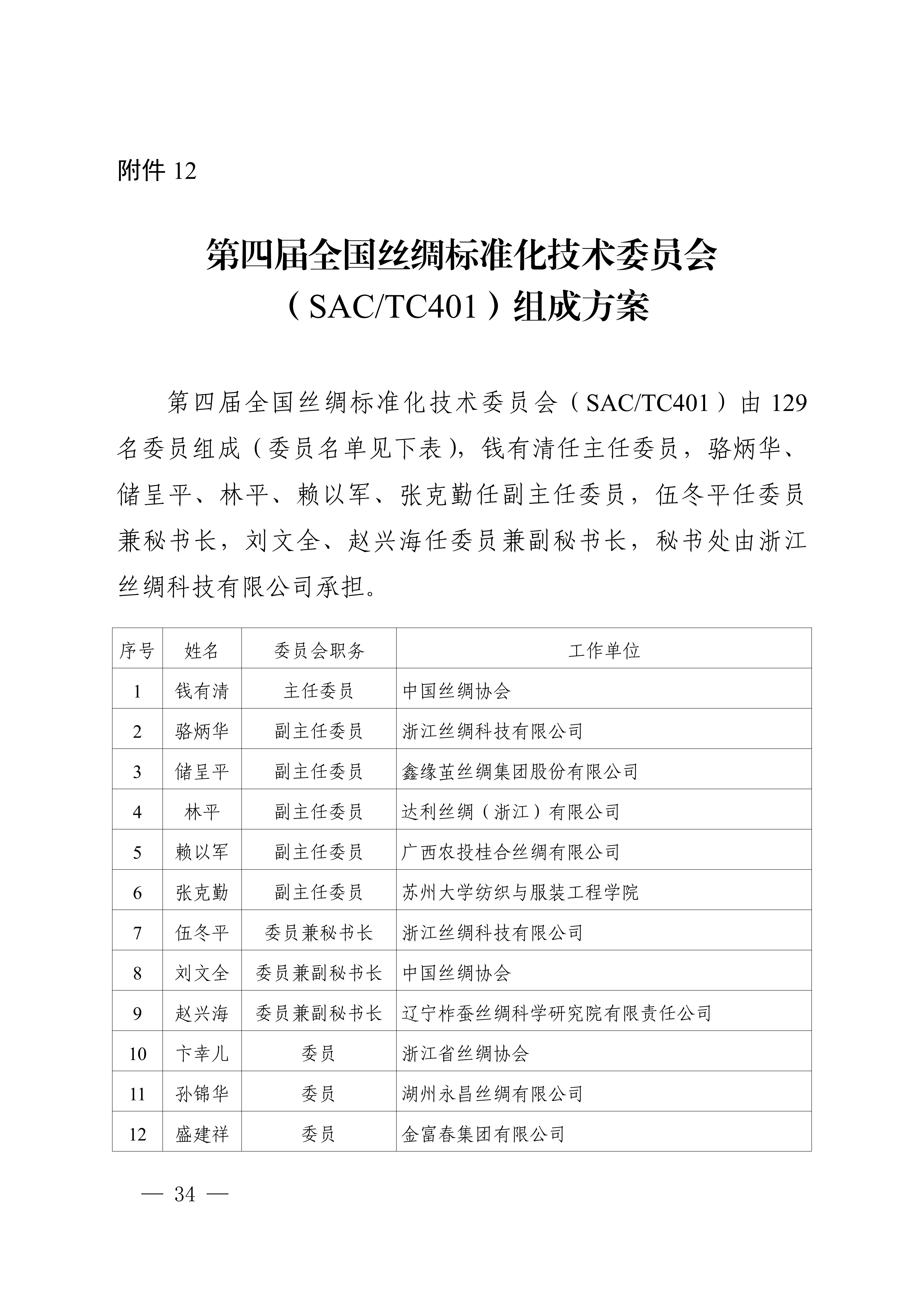 12.第四届全国丝绸标准化技术委员会(SAC/TC401)组成方案