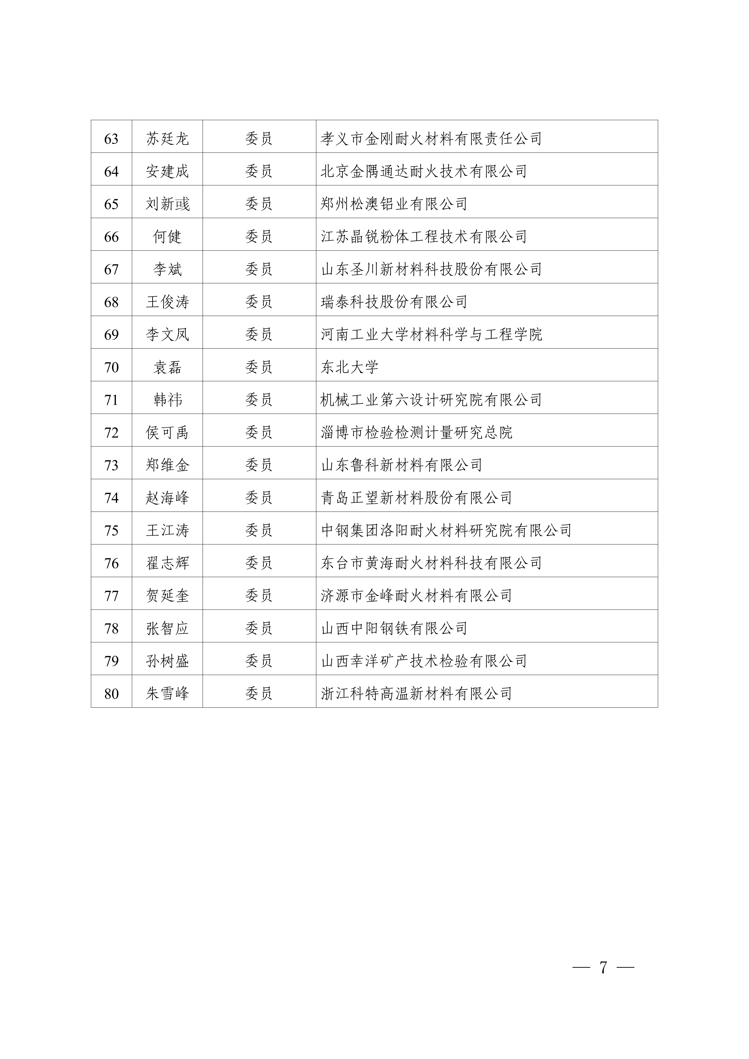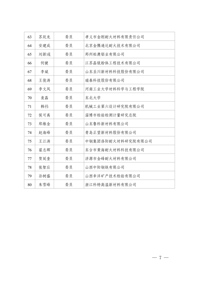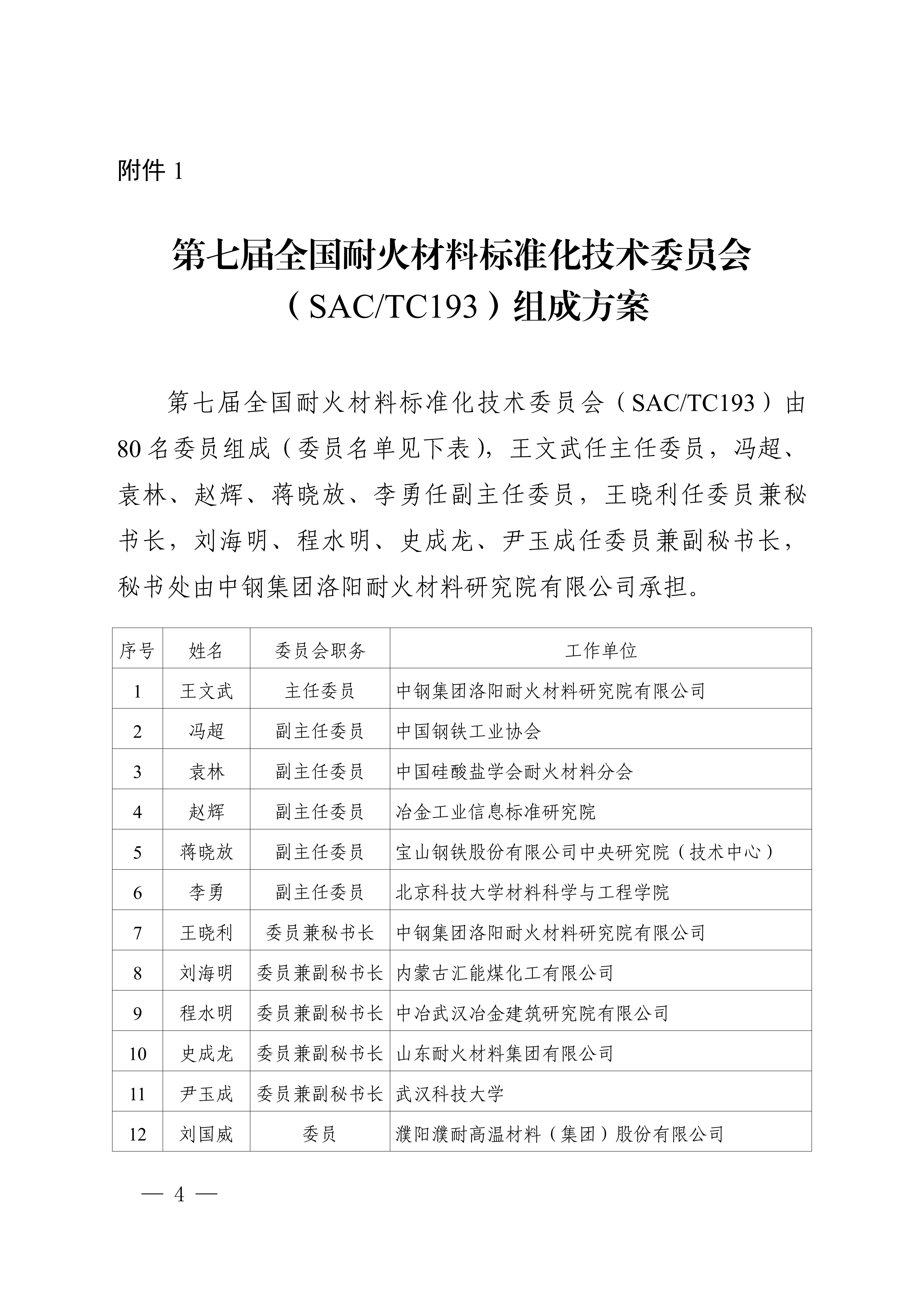 1.第七届全国耐火材料标准化技术委员会(SAC/TC193)组成方案