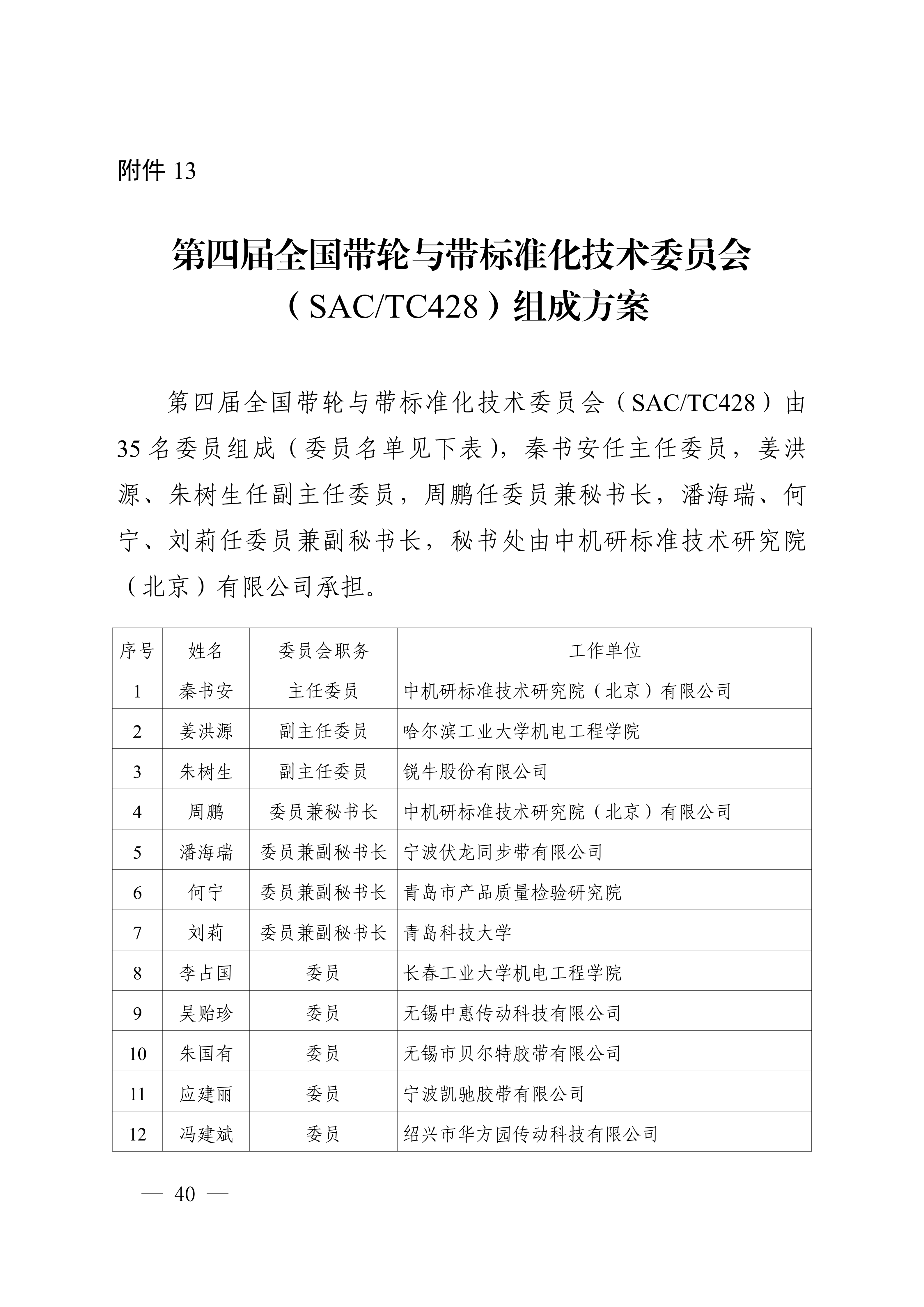13.第四届全国带轮与带标准化技术委员会(SAC/TC428)组成方案