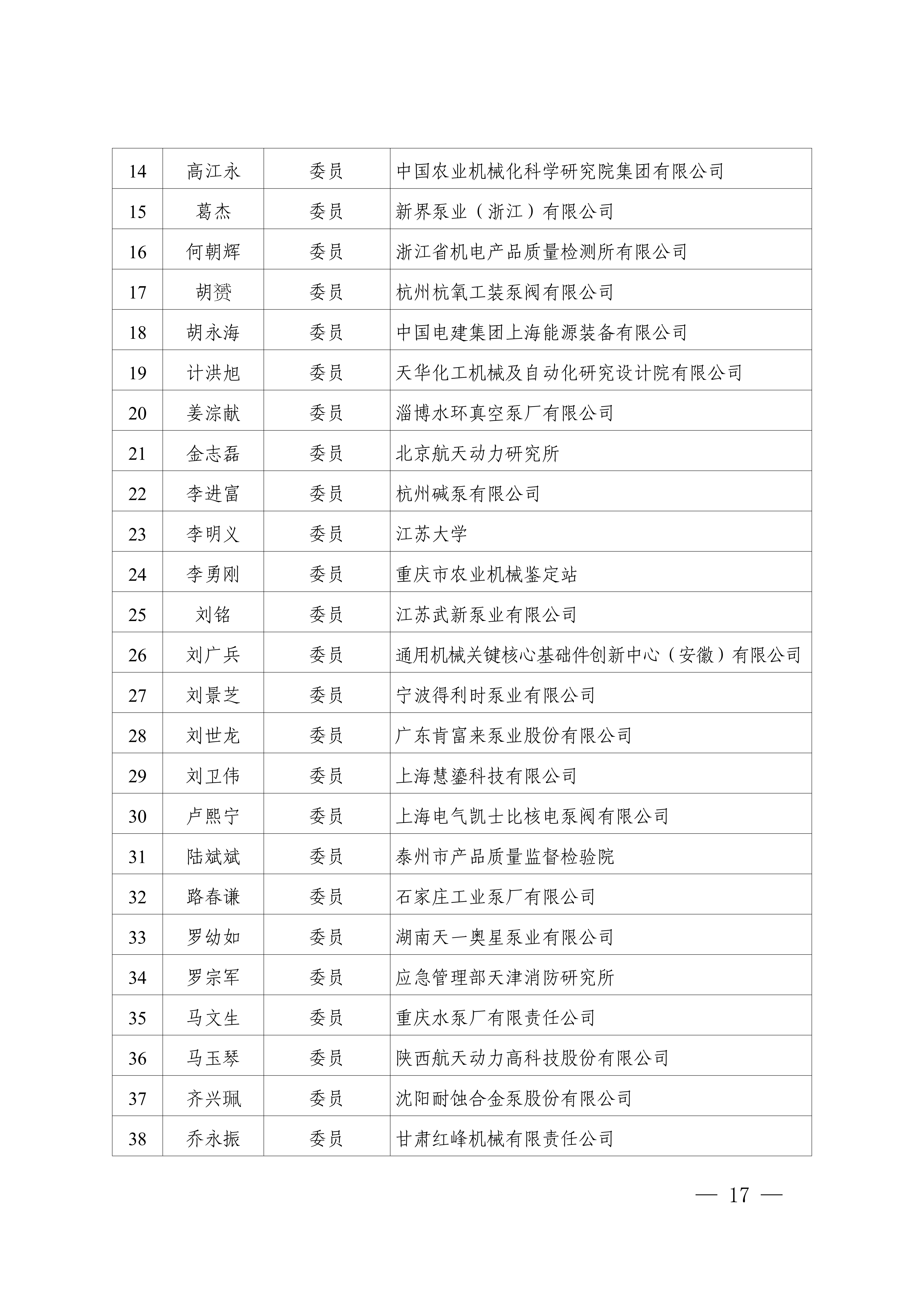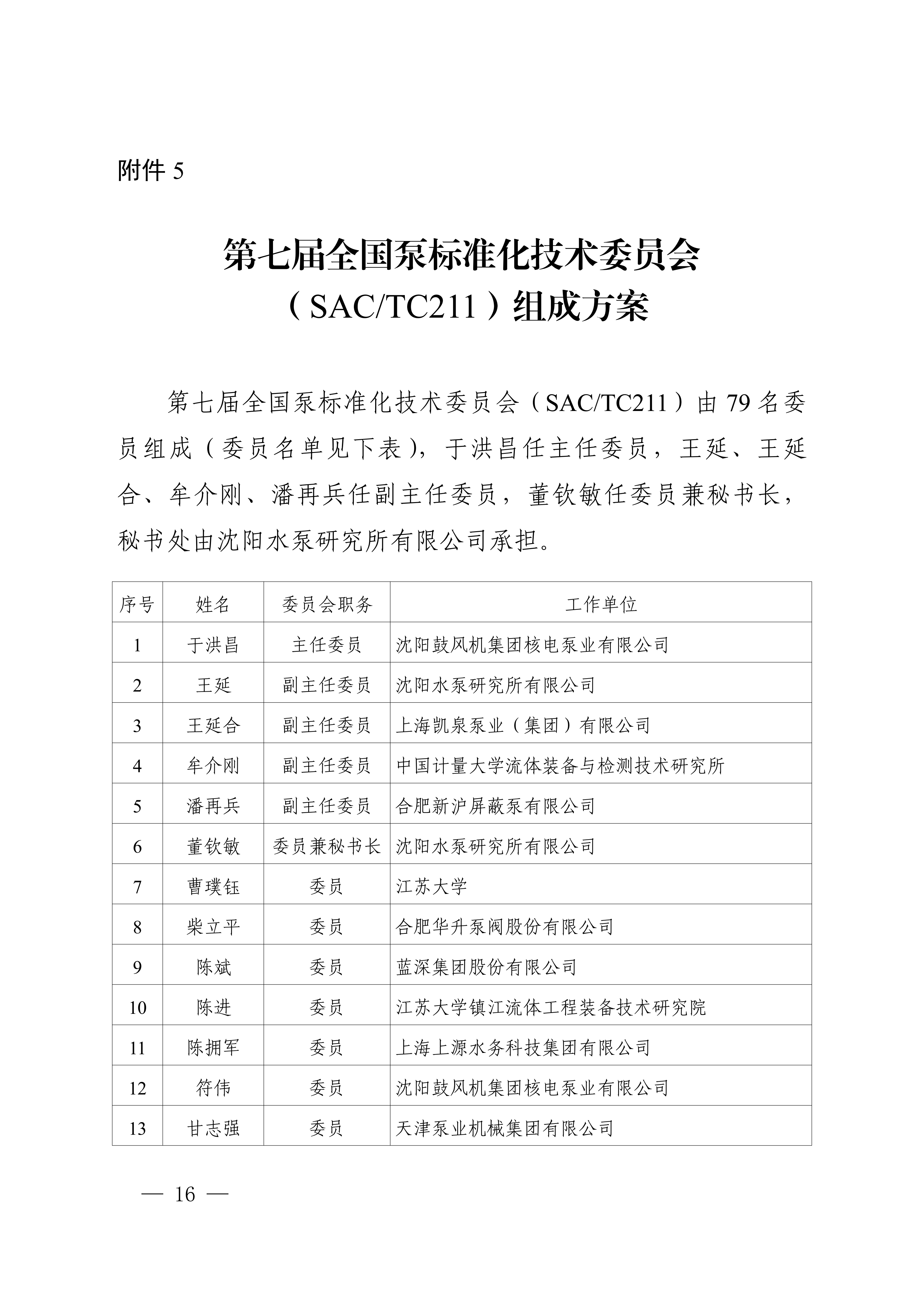 5.第七届全国泵标准化技术委员会(SAC/TC211)组成方案