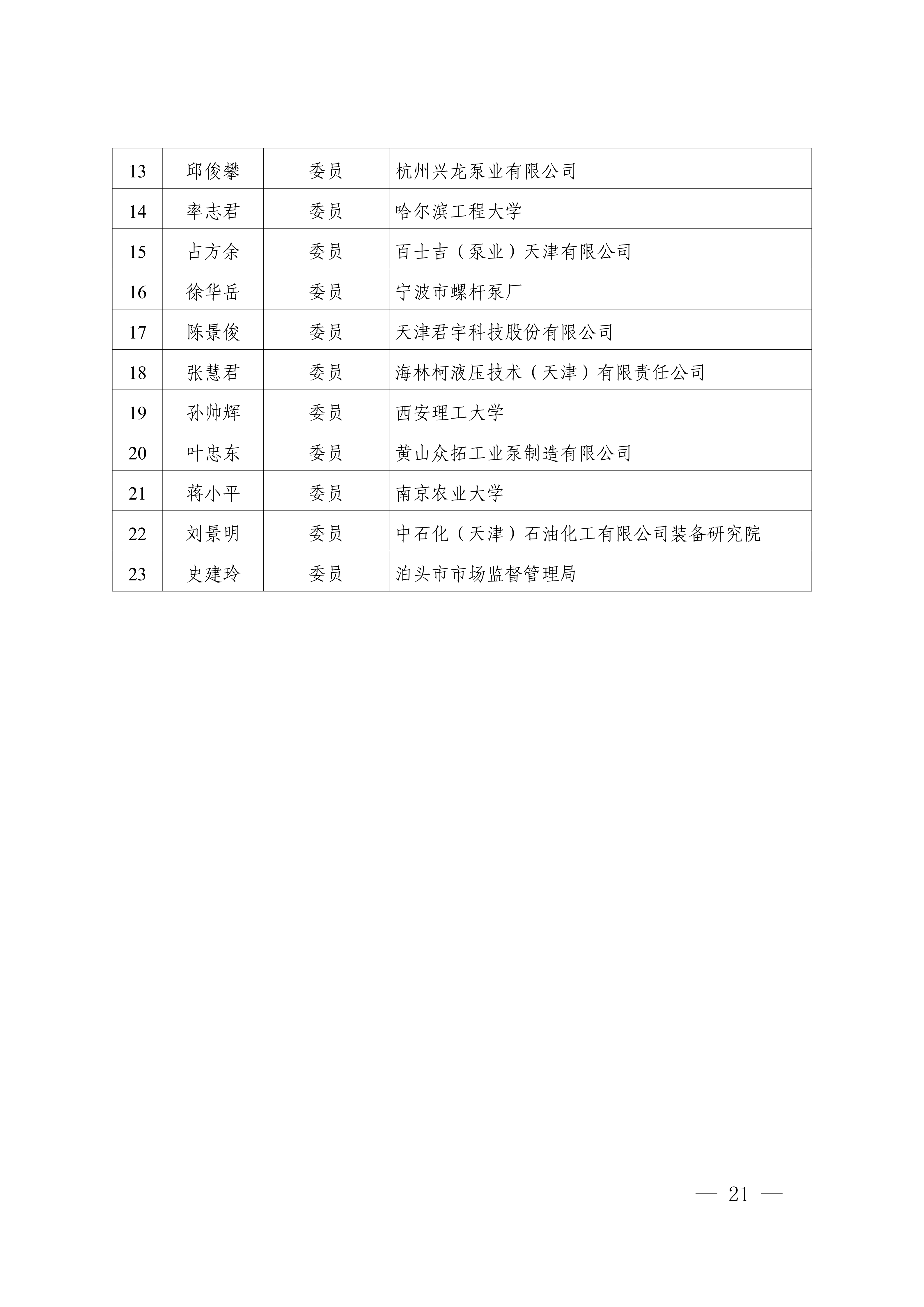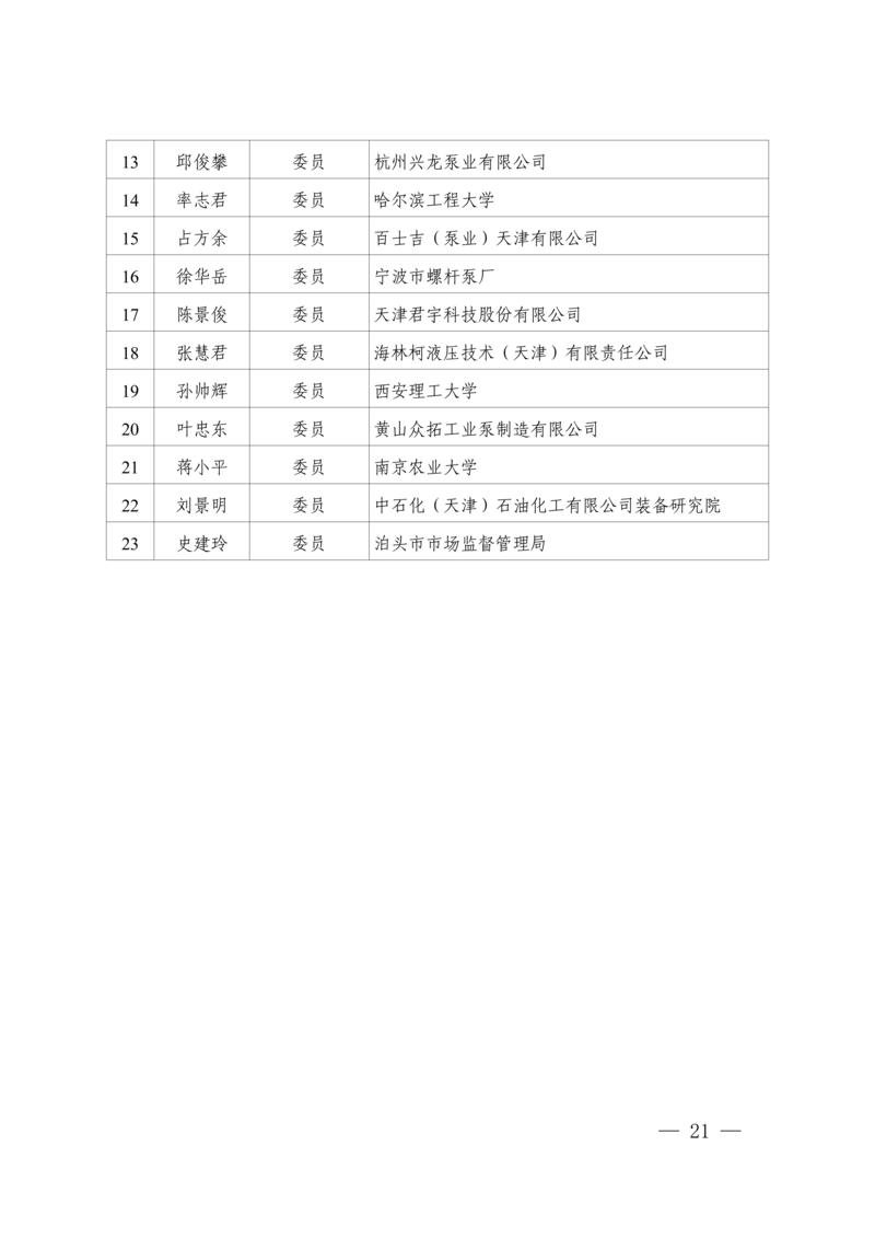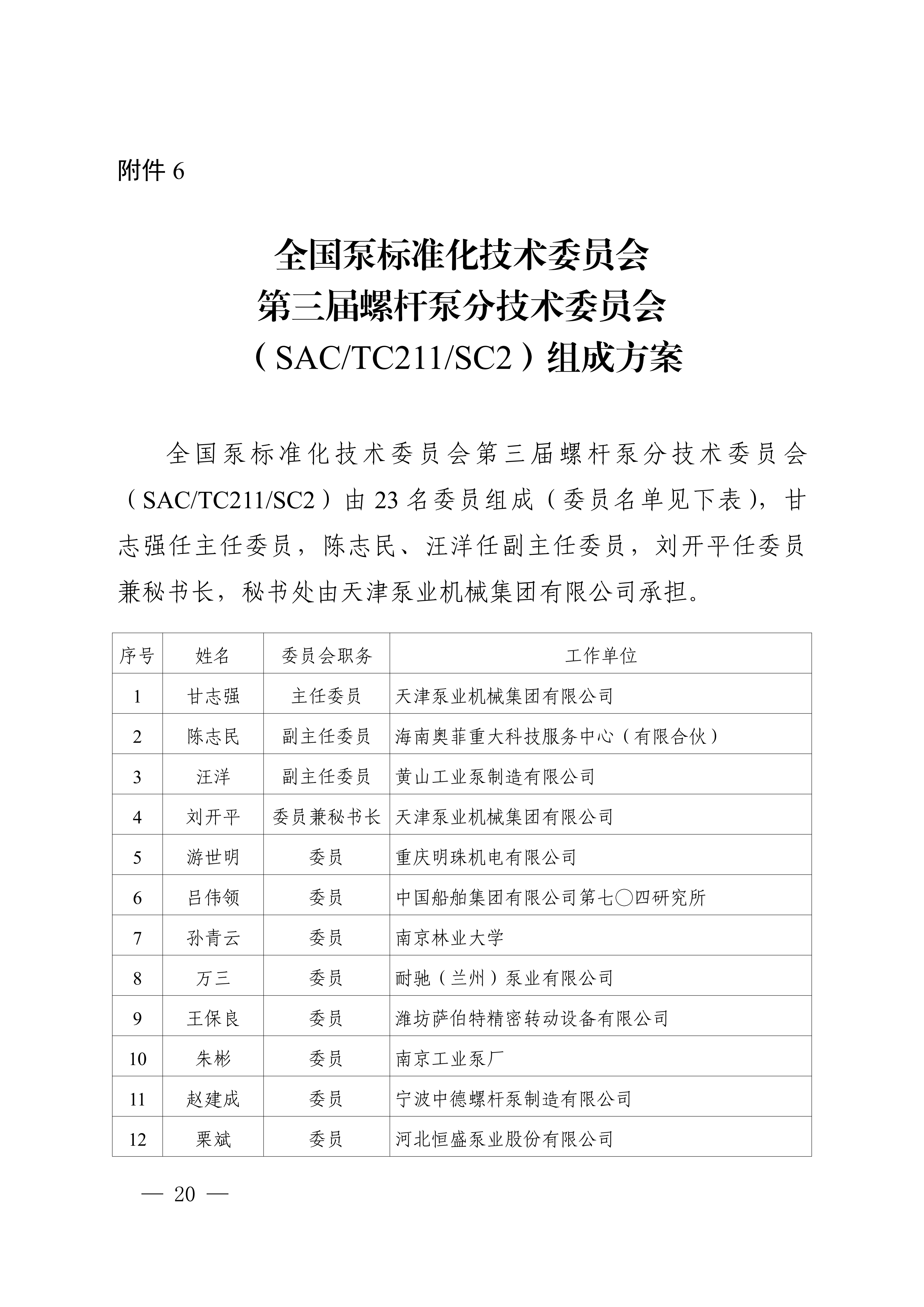 6.全国泵标准化技术委员会第三届螺杆泵分技术委员会(SAC/TC211/SC2)组成方案