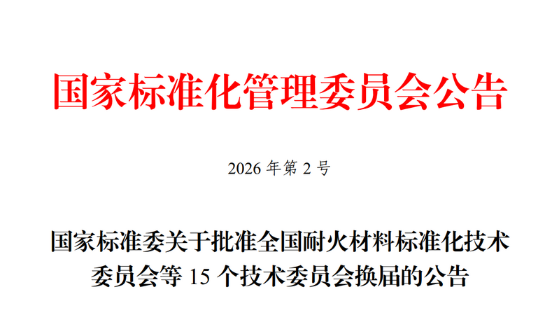 近日,国家标准委发布公告,批准全国耐火材料标准化技术委员会等15个技术委员会换届。