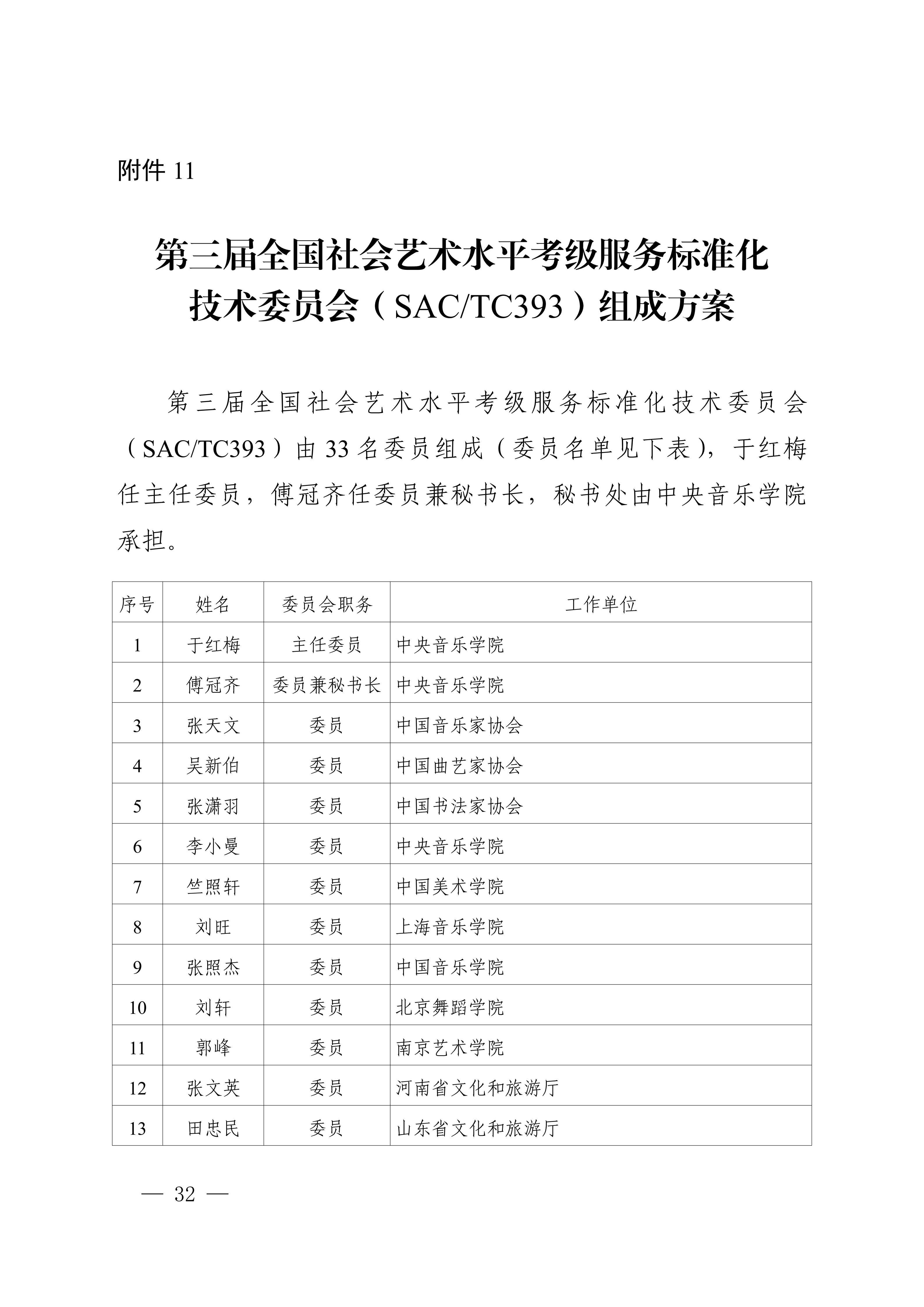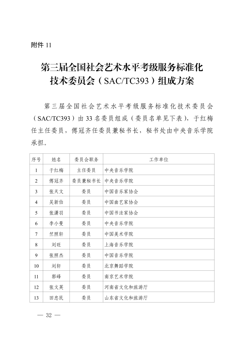 11.第三届全国社会艺术水平考级服务标准化技术委员会(SAC/TC393)组成方案