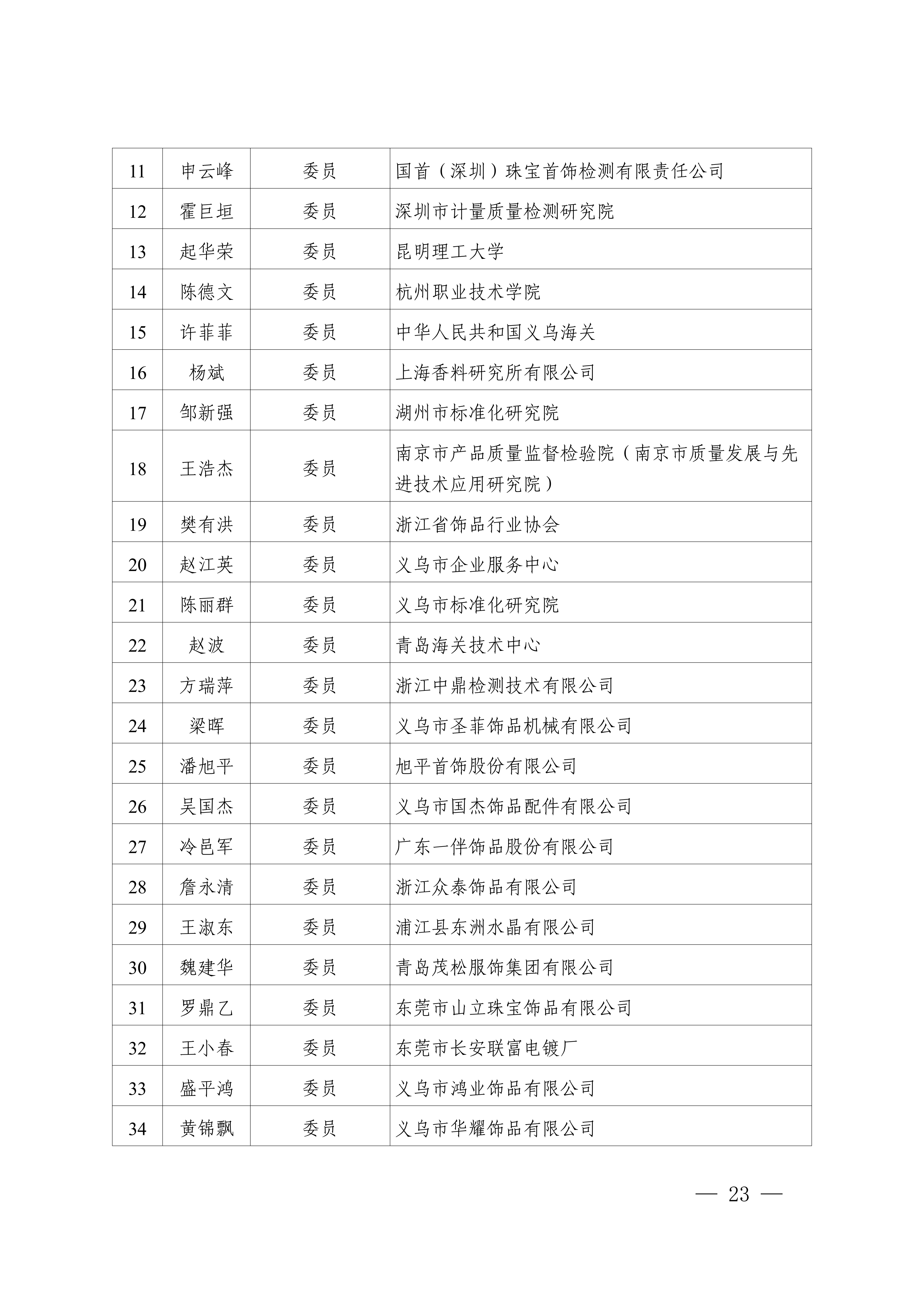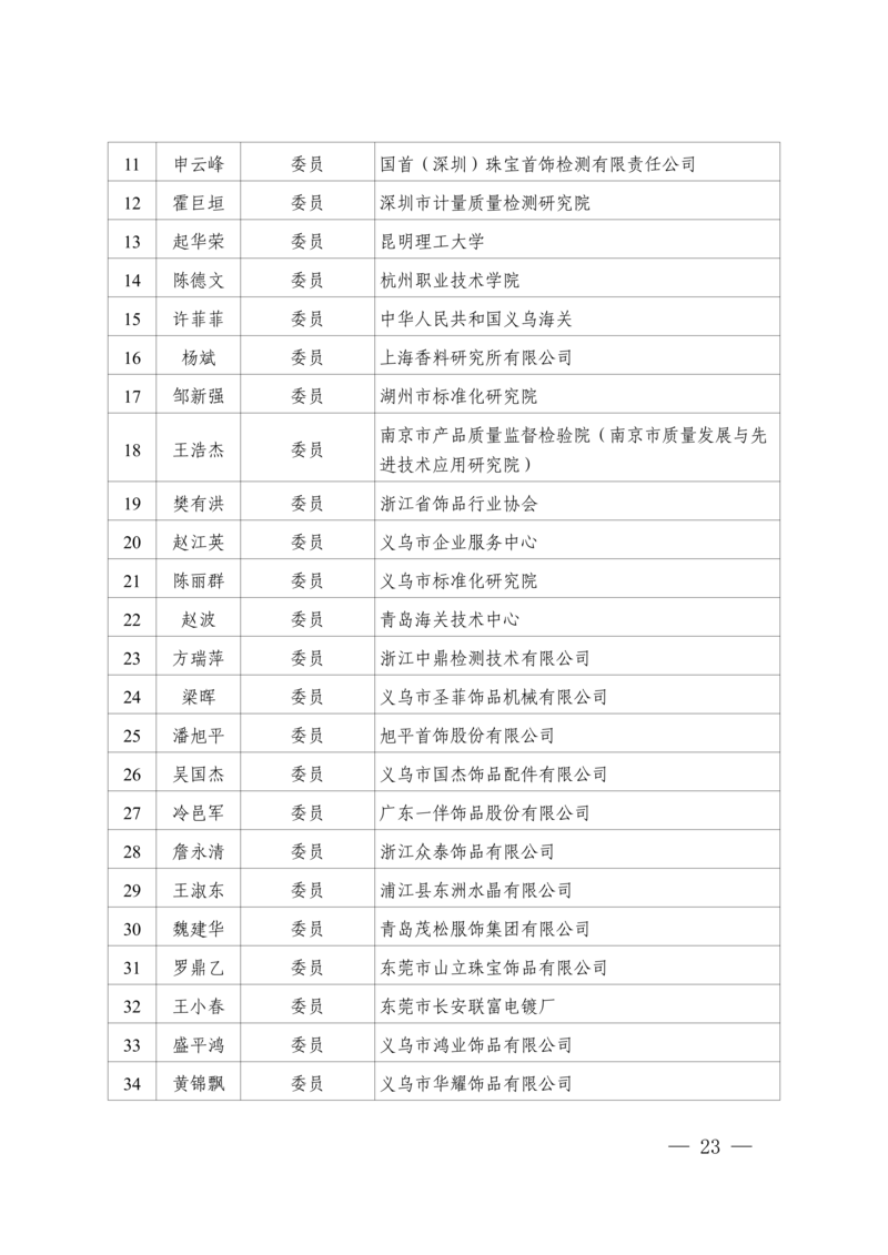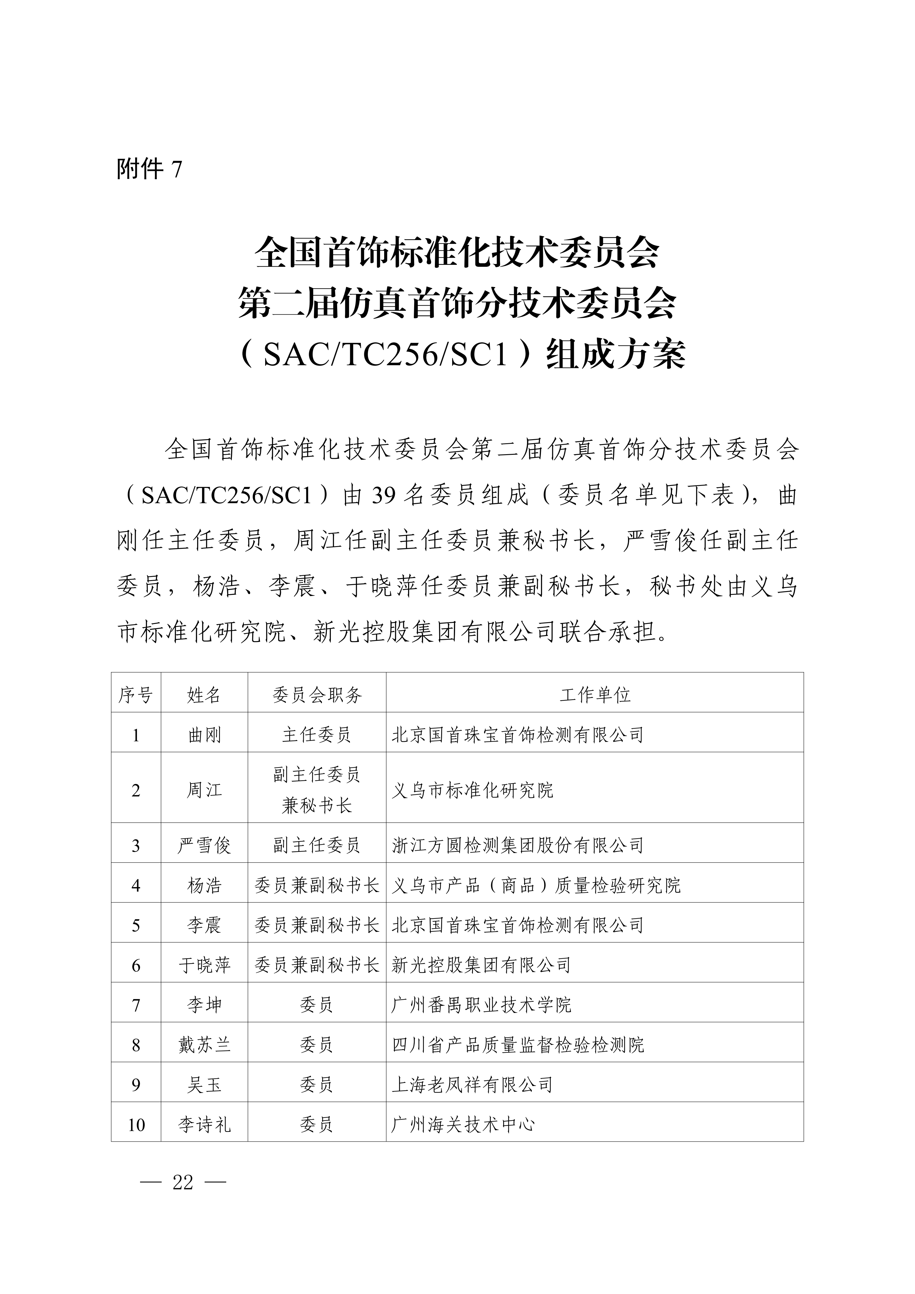 7.全国首饰标准化技术委员会第二届仿真首饰分技术委员会(SAC/TC256/SC1)组成方案