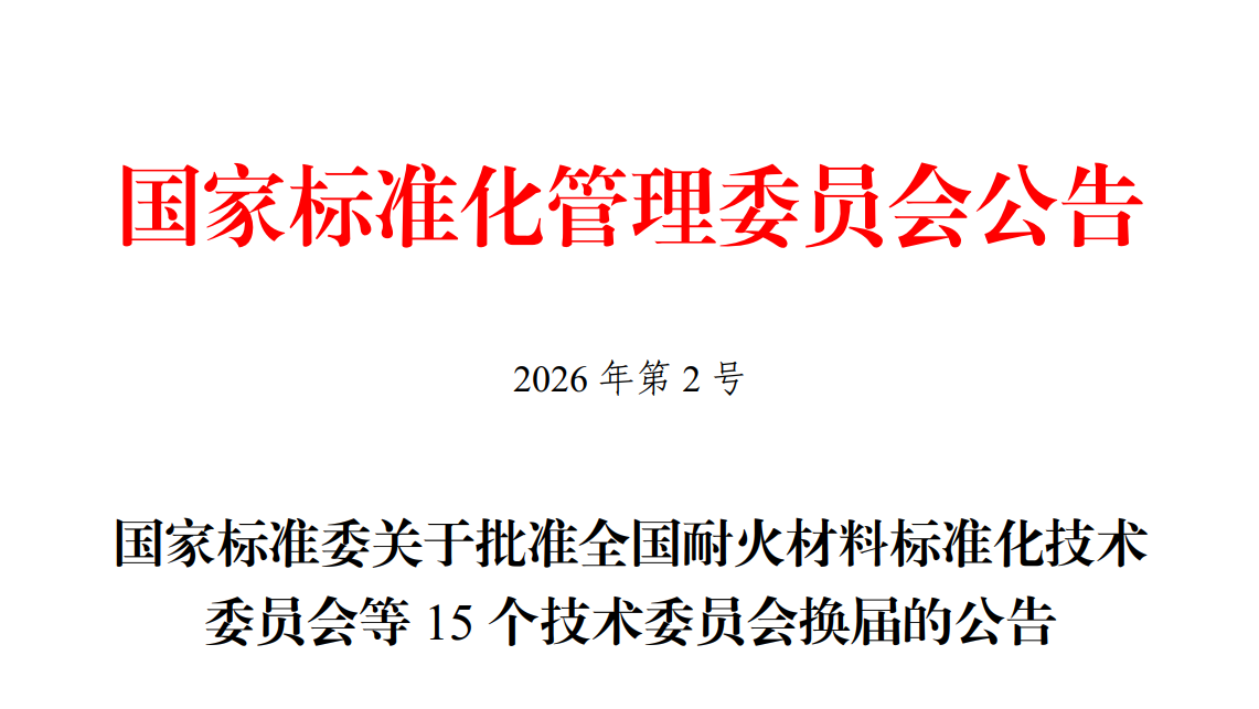 国家标准委关于批准全国耐火材料标准化技术委员会等15个技术委员会换届的公告