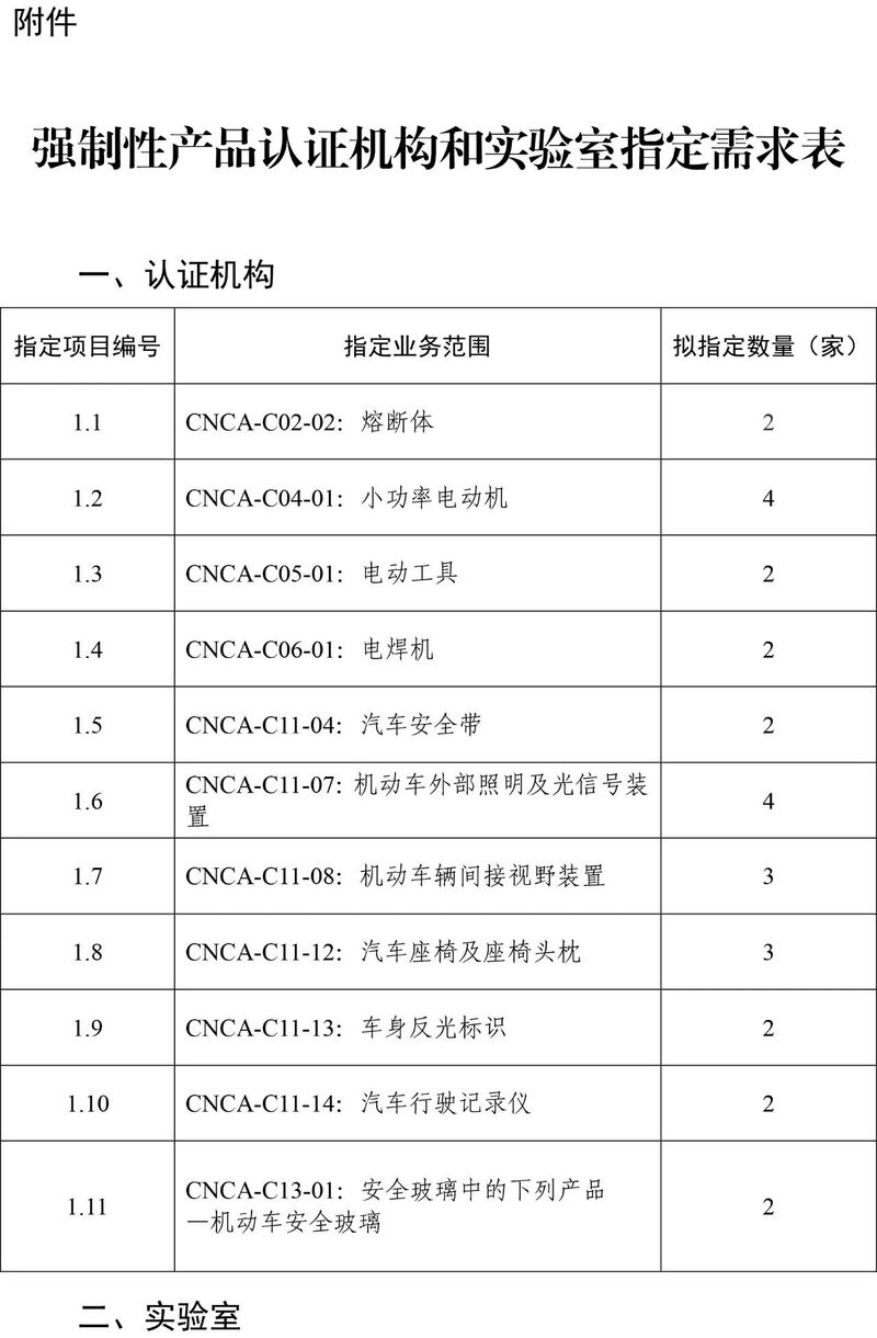 按照资源合理利用、公平竞争、便利有效的原则,拟指定认证机构28家次,实验室18家次。指定需求详见附件。