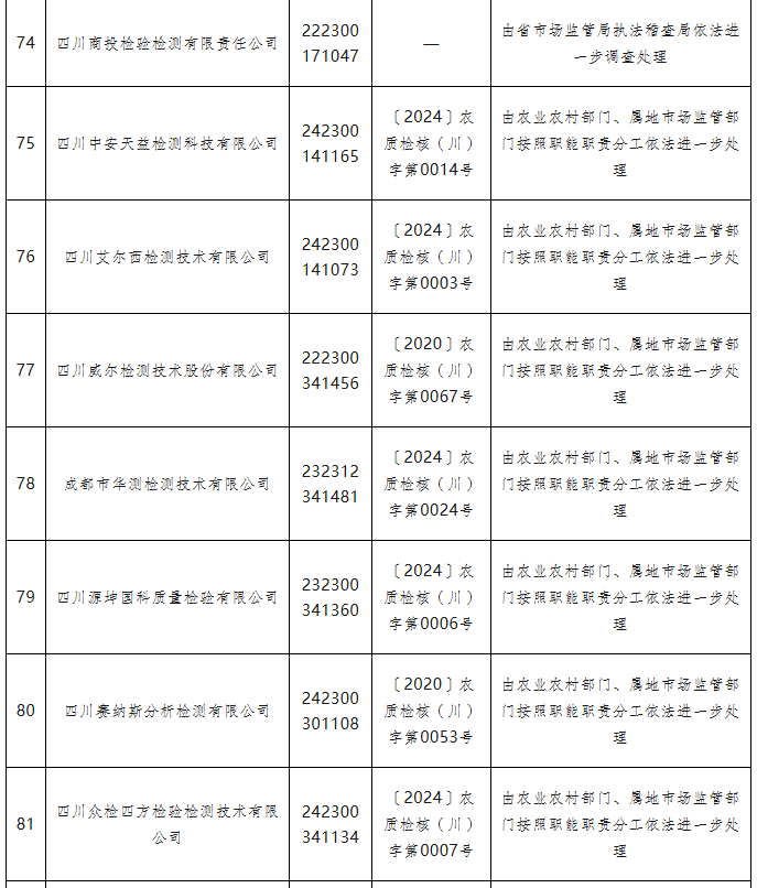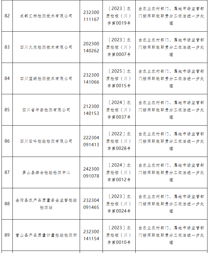 为深入贯彻落实《国务院办公厅关于深入推进跨部门综合监管的指导意见》,按照《市场监管总局等八部门关于组织开展2025年度检验检测机构监督抽查工作的通知》及《四川省2025年度省本级部门联合双随机抽查计划》部署要求,省市场监管局、公安厅、自然资源厅、生态环境厅、交通运输厅、农业农村厅等六部门联合开展了2025年全省检验检测机构“双随机、一公开”监督抽查。现将有关情况通报如下: