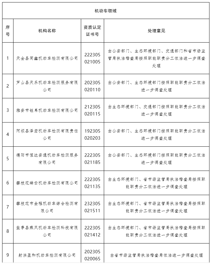 (一)对机动车检验机构涉嫌出具虚假检验检测报告的,由公安部门、生态环境部门、交通运输部门按照职能职责分工依法进一步调查处理。