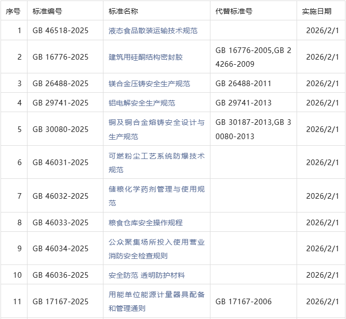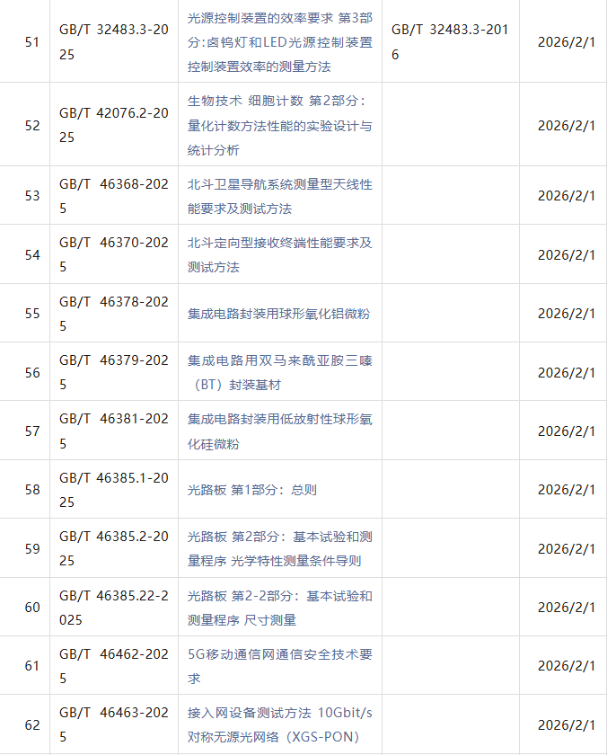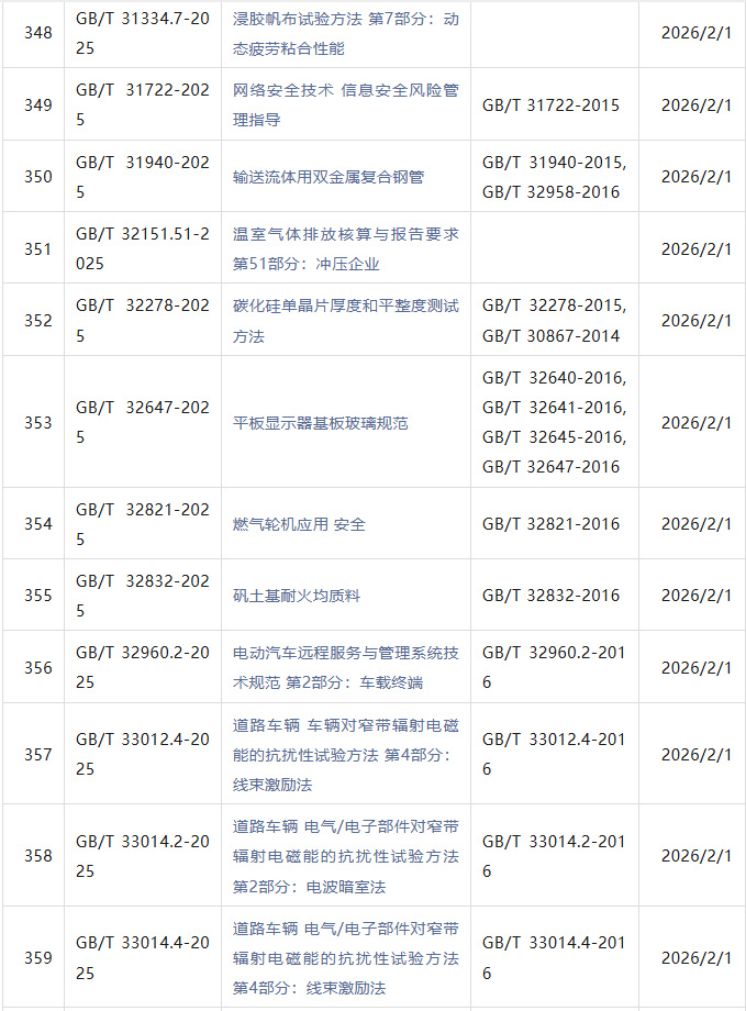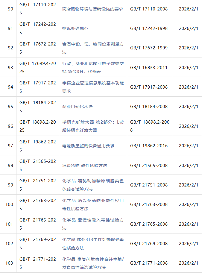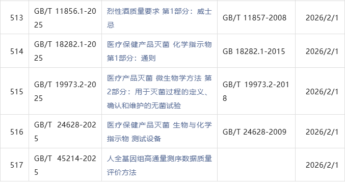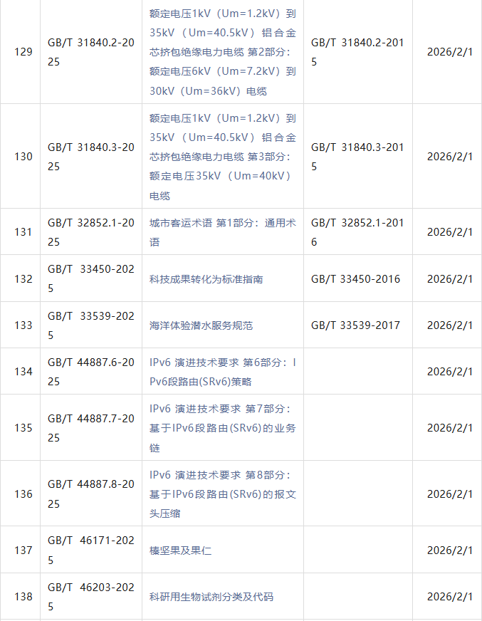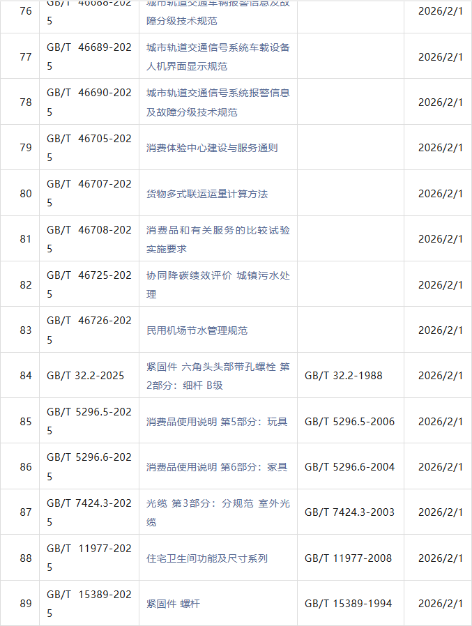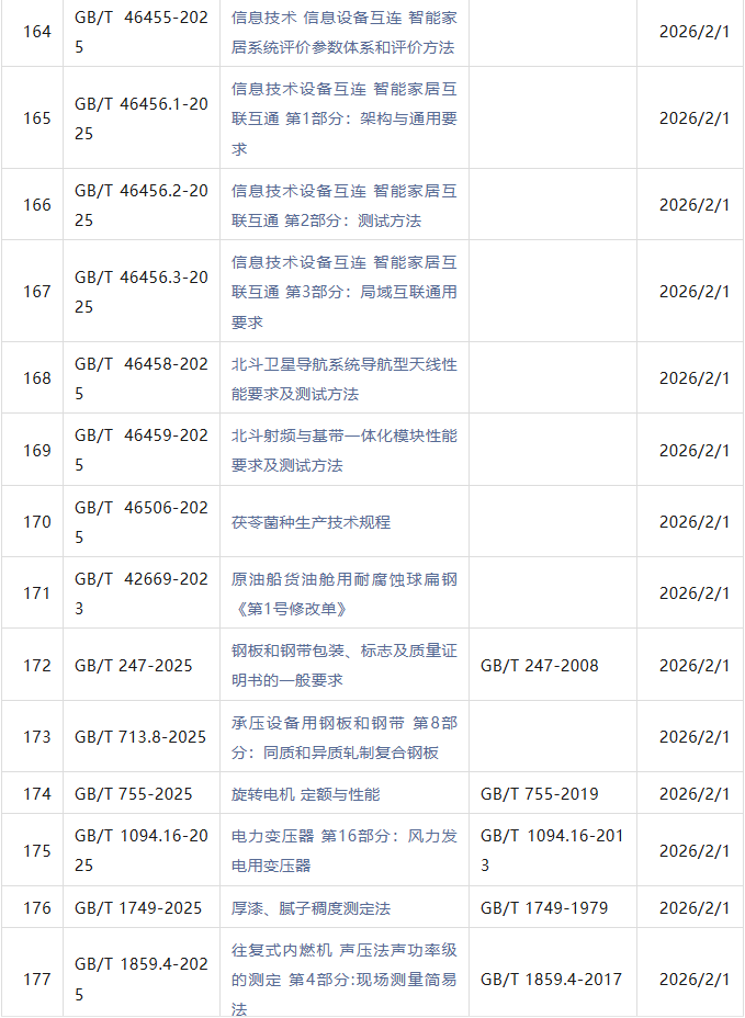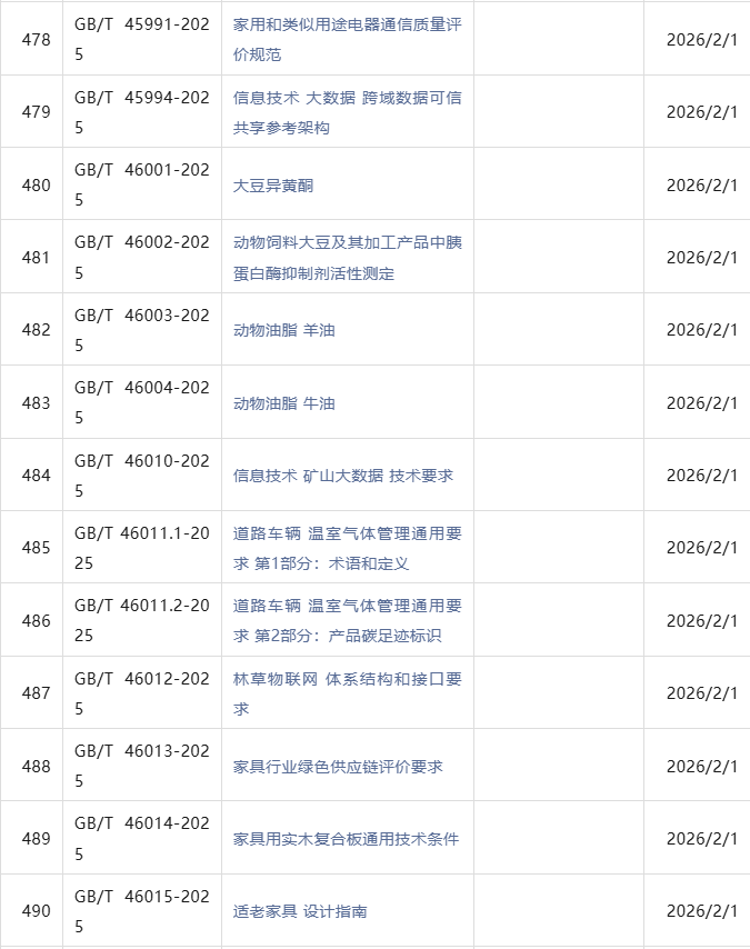 认证君将2026年2月1日起正式实施的国标进行了汇编整理,内容如下,供参考。