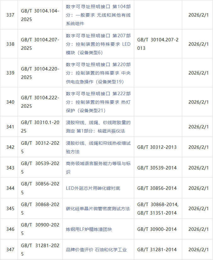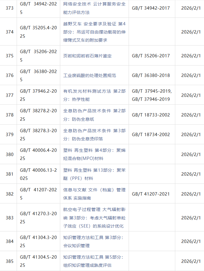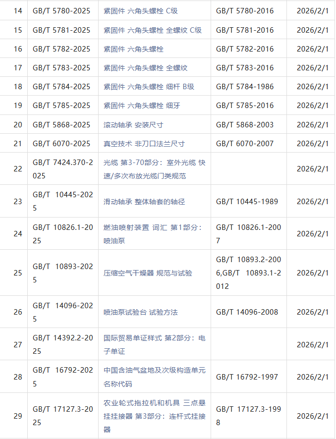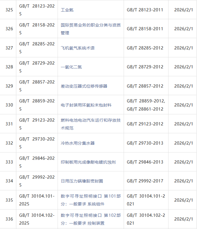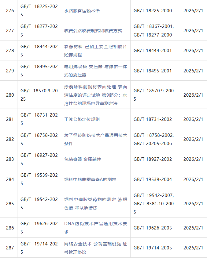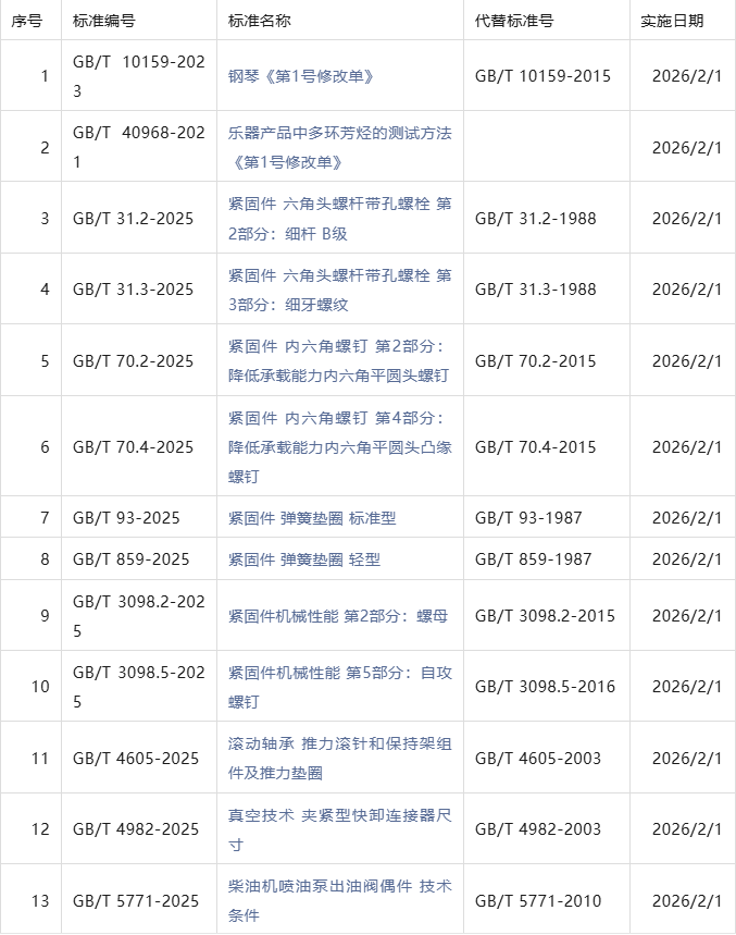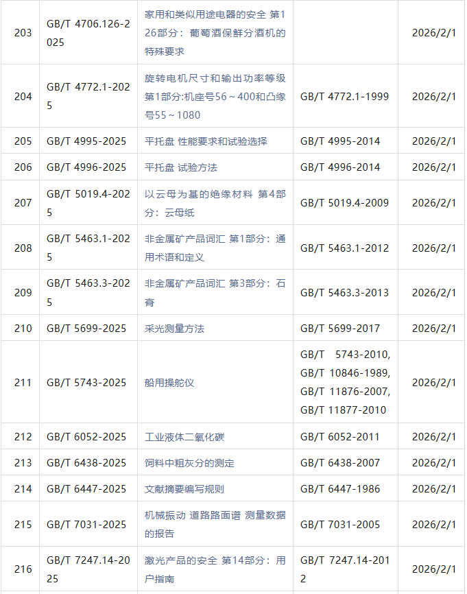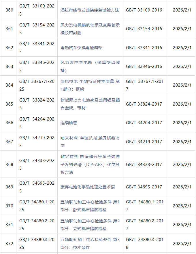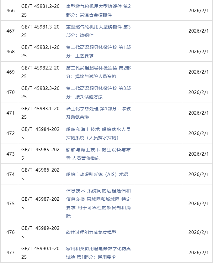 认证君将2026年2月1日起正式实施的国标进行了汇编整理,内容如下,供参考。