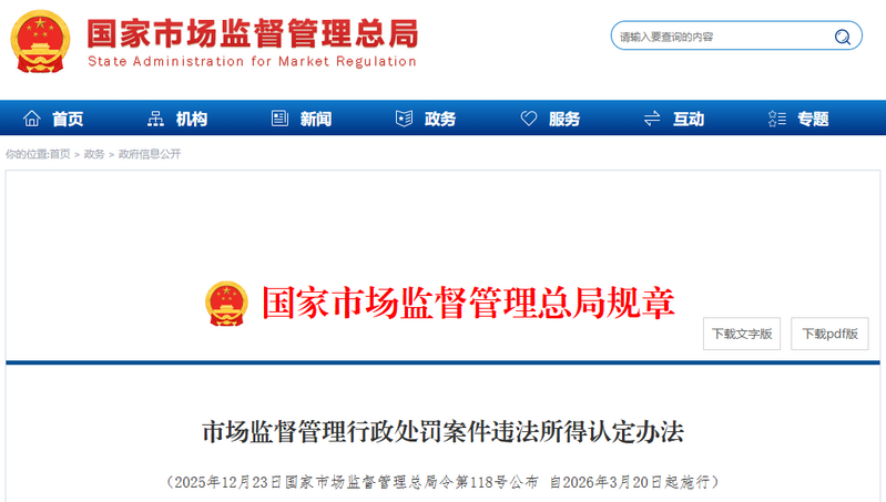 为规范市场监管行政处罚案件违法所得认定、统一执法尺度,促进严格规范公正文明执法,市场监管总局出台了《市场监督管理行政处罚案件违法所得认定办法》(以下简称《办法》),将于今年3月20日起正式实施。《办法》共17条,明确了市场监管领域违法所得认定的基本原则、计算规则及疑难问题的处理规则,为监管执法提供清晰指引。