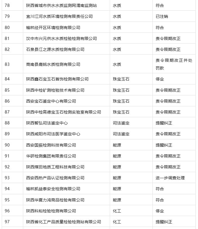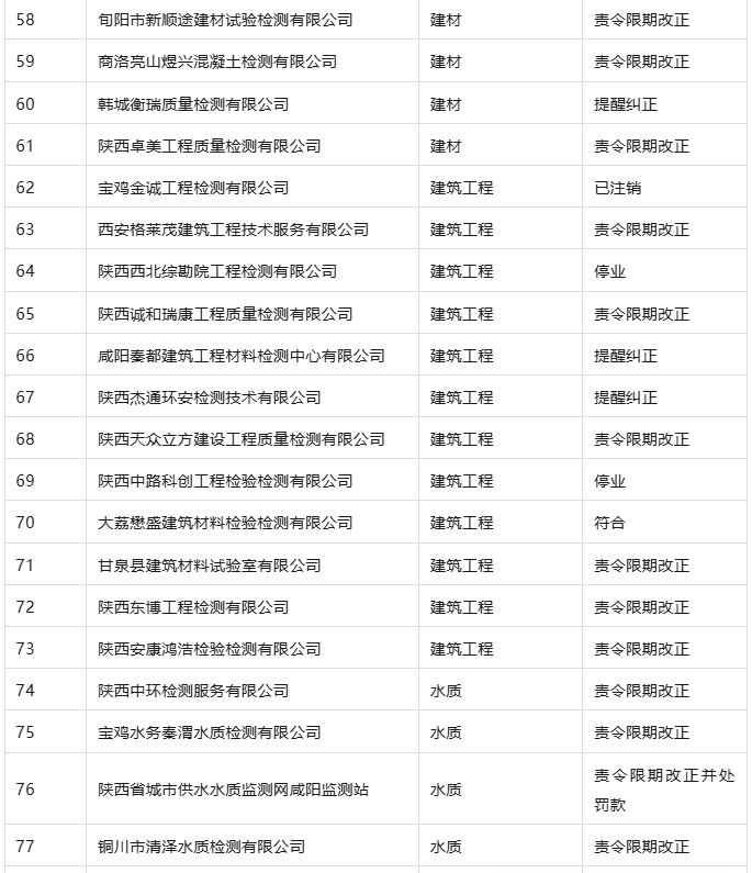 近日,陕西省市场监督管理局通报2025年检验检测机构“双随机、一公开”监督抽查结果。本次共抽查检验检测机构123家,其中1家机构涉嫌存在违法违规行为进一步调查处理;2家机构因存在基本条件和技术能力不能持续符合资质认定条件和要求,出具不实检验检测报告等行为责令限期改正并处罚款。