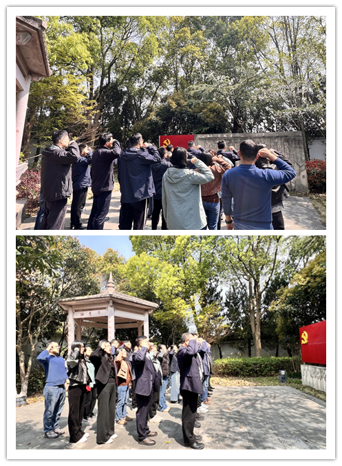 青山埋忠骨,鲜花寄哀思,在庄严肃穆的革命烈士纪念碑前,员工代表将寄托着无限敬意的花篮献于纪念碑基座前,全体人员整齐列队,鞠躬默哀,深切追思为民族解放事业英勇献身的革命先烈。"我志愿加入中国共产党......"面对鲜红的党旗,全体同志高举右拳,重温入党誓词,铮铮誓言在耳边回荡。通过这种特殊的"沉浸式"教育,让红色信仰融入血脉,让初心使命扎根心田。